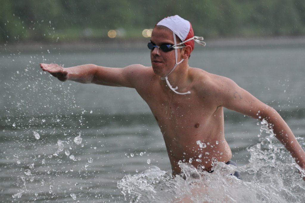 Voorop de man die van tevoren al rond liep alsof hij wel even alles ging winnen en dat ook zo ongeveer deed. Beter bekend onder de bijnaam Franse Niels. Rechtsvoor dus Michael Illinger, maar links een Heytse capje onderwater en een Heytse capje boven water. Dat betekent twee dingen: Kuep zwemt ook hard en Jimbo heeft ook een rood-witte cap op. Hoe dichter het veld bij de kant kwam, hoe dichterbij het peloton op de leiders kwam. Hierbij wist de Franse Niels de voorsprong wel te behouden, op de voet gevolgd door Peter. Jimbala kwam vlak voor het einde net een beetje in het gedrang en kwam erachter dat hij nog net iets meer aan zijn finish moet gaan werken. Hij finishte net achter Michael Ghyselbrecht en Marco Kwiatkowski, maar die zijn ook veel groter. Desalniettemin een hele nette zevende plek. Axel Tichelaar pakte ook nog even 3 punten mee voor de 14e plek.